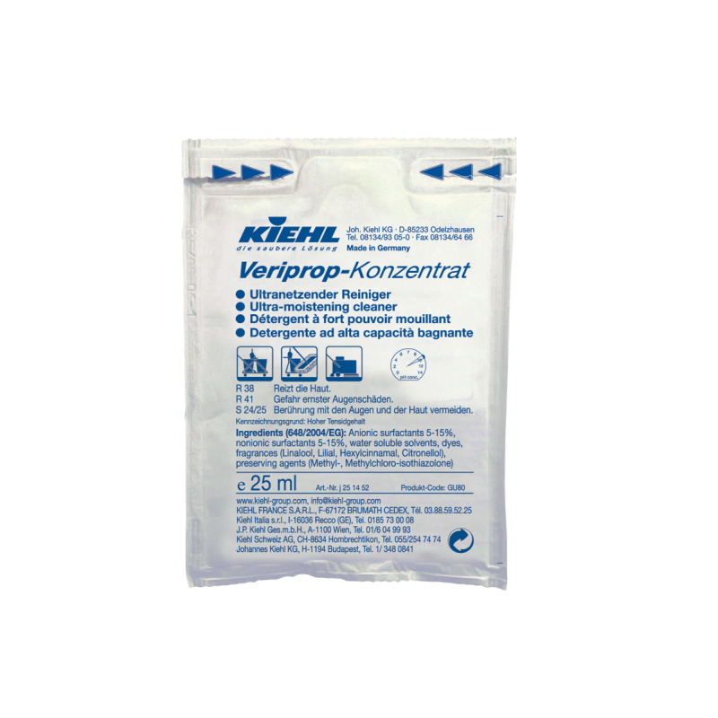 Veriprop-Konzentrat jest produktem do mycia bieżącego o znakomitych właściwościach zwilżających i aktywnym działaniu. Dokładne zwilżenie całej powierzchni powoduje, że Veriprop-Konzentrat myje podłogi nawet mocno odpierające wodę dokładnie i bez pozostawienia smug. Produkt posiada również niezwykle mocne właściwości transportowania brudu, które optymalizują 1-stopniowe mycie bieżące. Związki powierzchniowo- czynne zawarte w produkcie są biodegradalne w ponad 90 %.