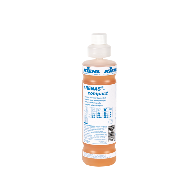 ARENAS®-compact jest uniwersalnym enzymatycznym środkiem piorącym wolnym od fosforanów o wyjątkowej sile prania w temp. od 30 do 90° C. Dzięki zawartości inhibitorów szarzenia i enzymów produkt usuwa także mocne zabrudzenia jak np. plamy z krwi i białka. Produkt pierze doskonale mocno zabrudzone tekstylia używane w sektorze hotelarskim oraz w zakładach przetwórstwa spożywczego. ARENAS®-compact przeznaczony jest do prania wszystkich tekstyliów, zwłaszcza tekstyliów do sprzątania.